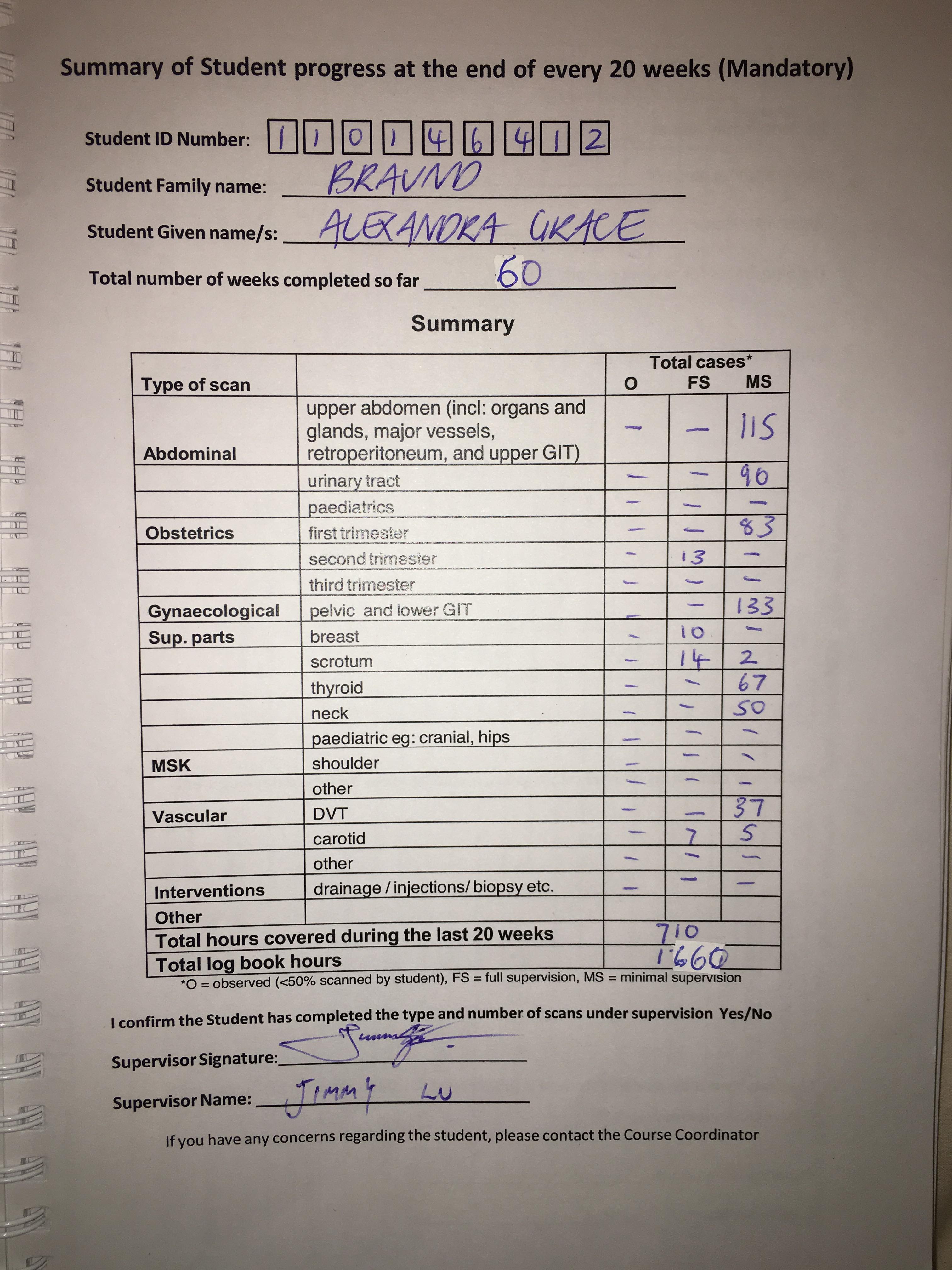 This page is part of the collection 'Alexandra's Program Clinical milestones and sonography training record- Part 3'.