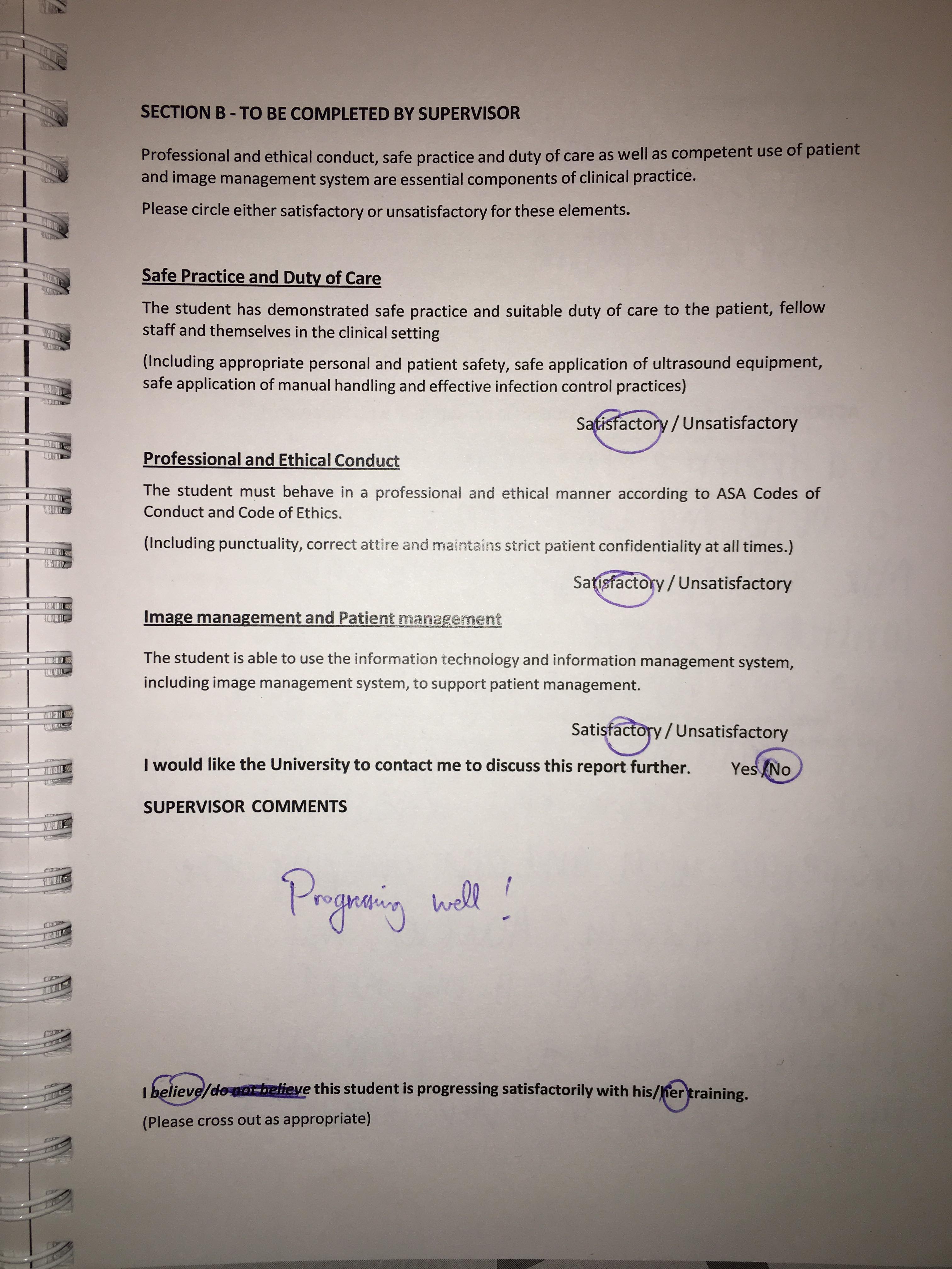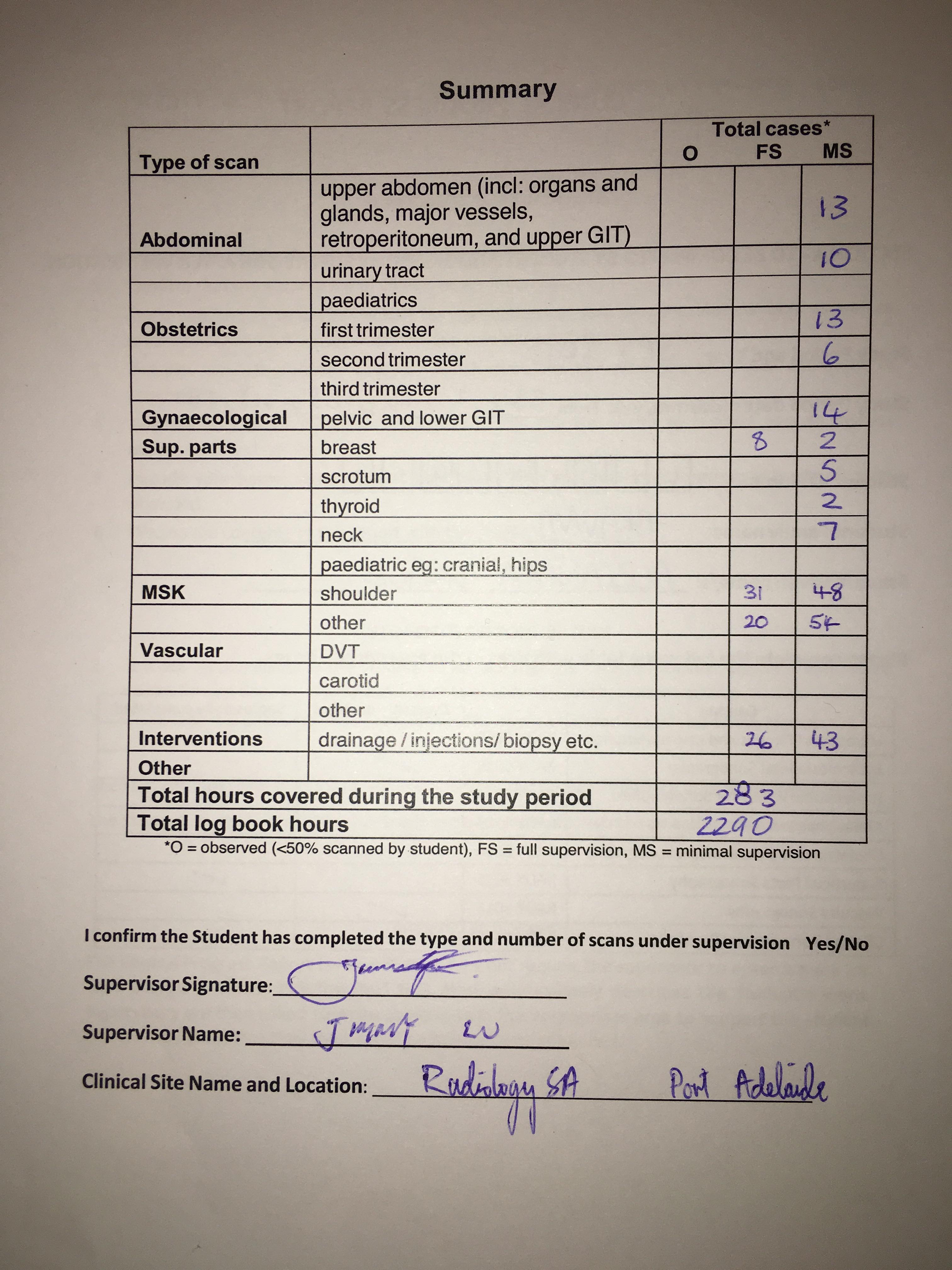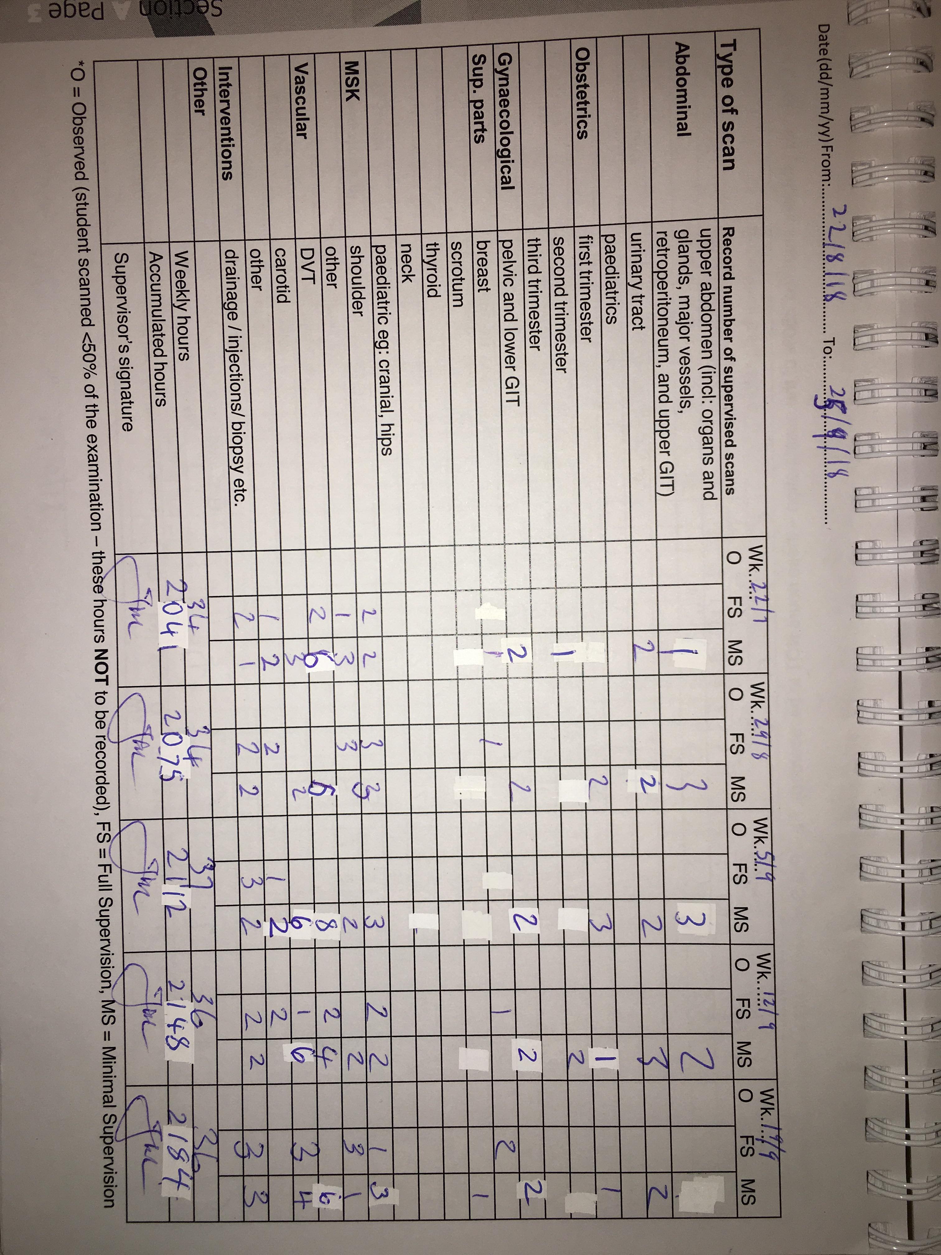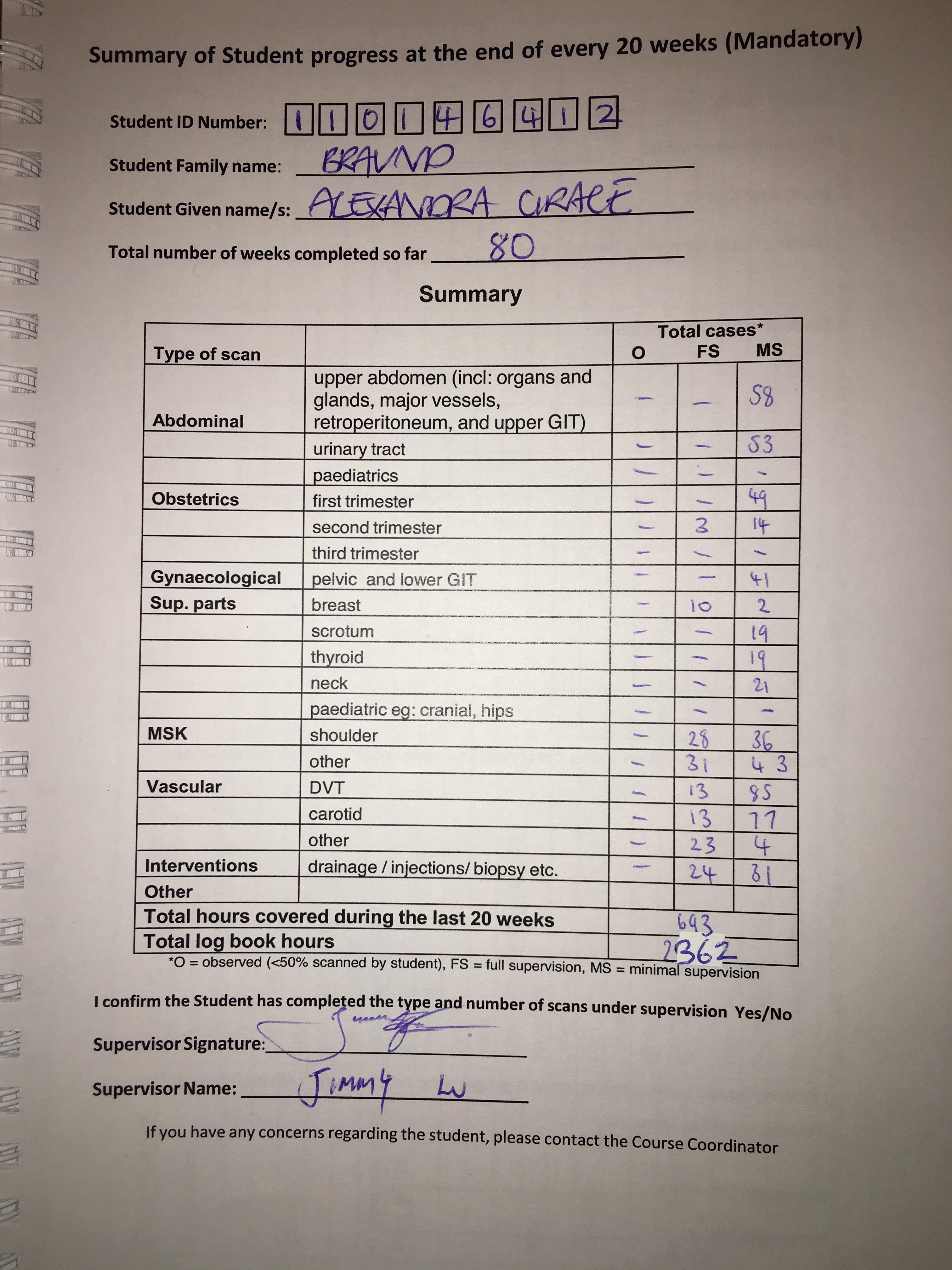 This page is part of the collection 'Alexandra's Program Clinical milestones and sonography training record- Part 3'.